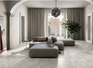 Grès cérame effet béton-pierre de la collection Cocoon par Ricchetti (Gruppo Ricchetti).